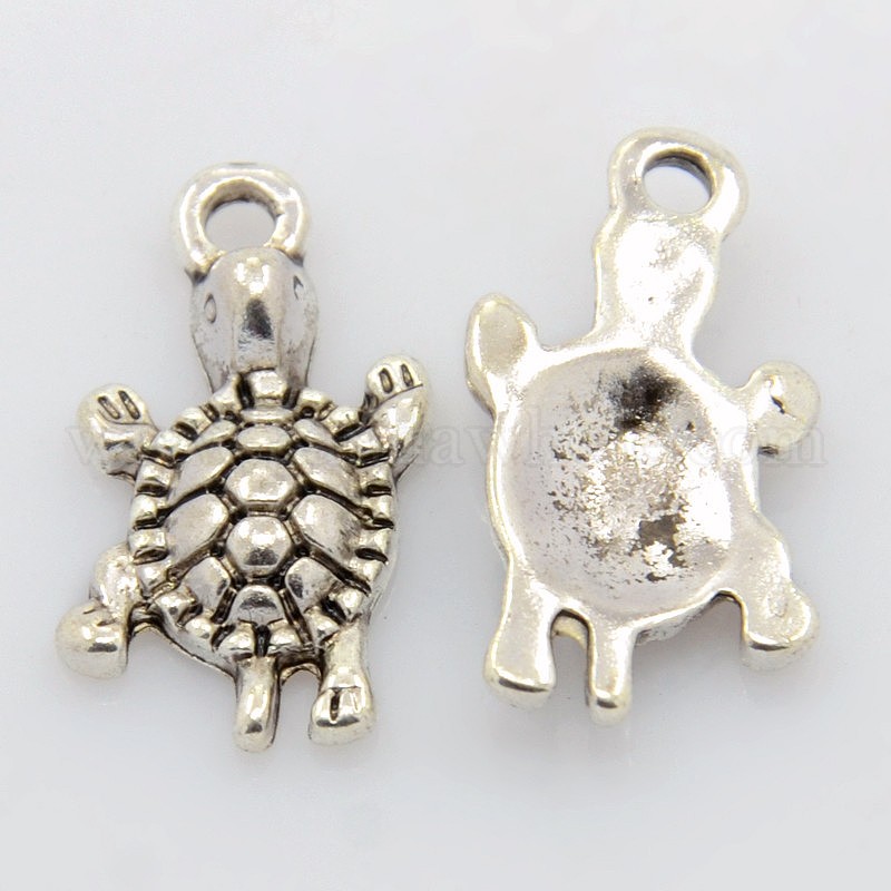 • Античное Серебро Сплавочные подвески тибетского стиля, без кадмия и без свинца, черепаха, античное серебро, 23x12x4 мм, отверстие : 2 мм, Около 630 шт / 1000 г