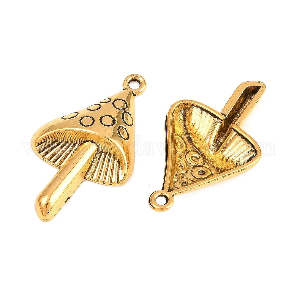 Без свинца и без кадмия, Сплавочные подвески тибетского стиля, гриб, длиной около 30 мм , шириной 17.5 мм , толщиной 5.5 мм , отверстие : 1.5 мм