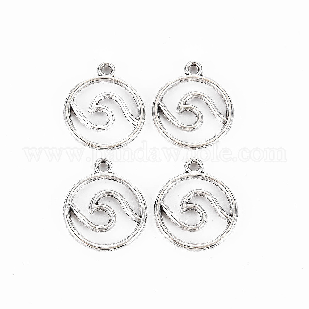 Сплавочные подвески тибетского стиля, без кадмия и без свинца, плоские круглые с волной
