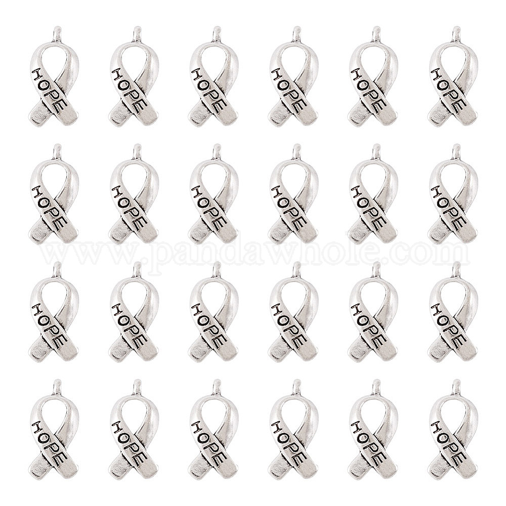 Сплавочные подвески ленты символа борьбы против рака молочной железы со словом "HOPE", без кадмия и без свинца