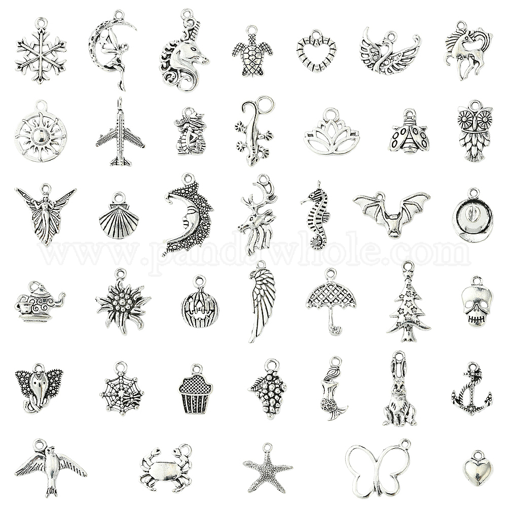 • Античное Серебро 120 шт 120 подвески из сплава в тибетском стиле, разнообразные, античное серебро, 4~34x4~23.5x1~11 мм, 1 шт / стиль