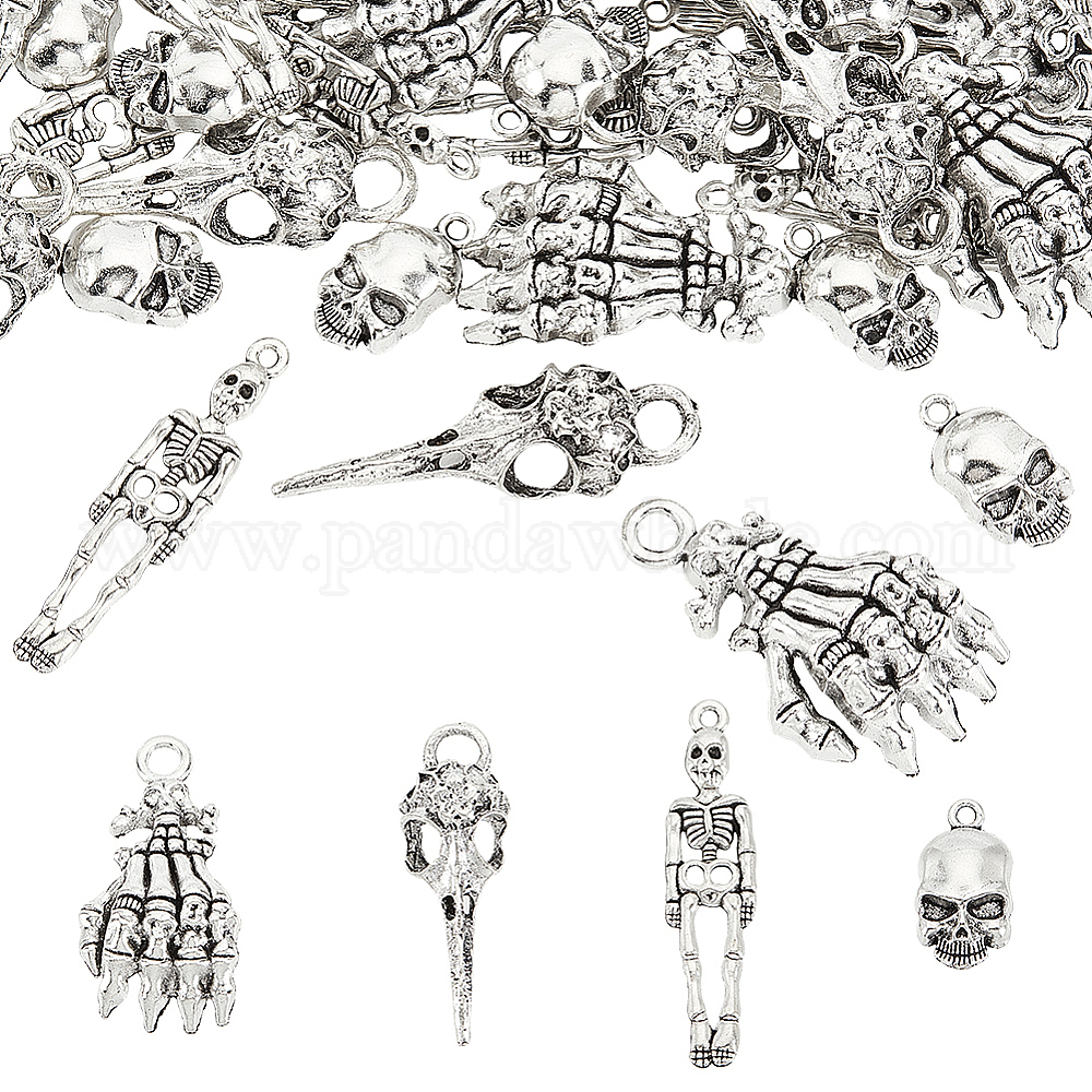 4 подвески из сплава в тибетском стиле, скелет и ворон череп и череп
