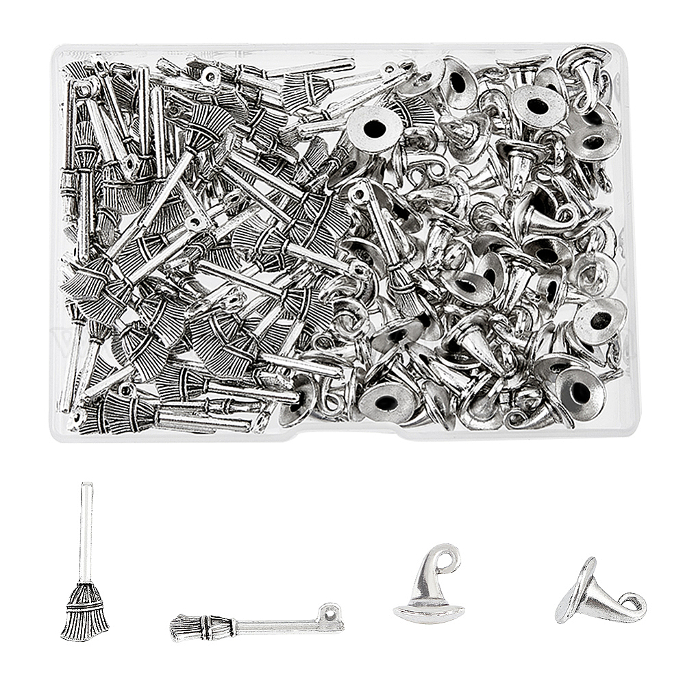 140 шт 2 стиль подвески из сплава в тибетском стиле, тибетский стиль сплава цинка подвески, без свинца и без кадмия, шляпа ведьмы и метла