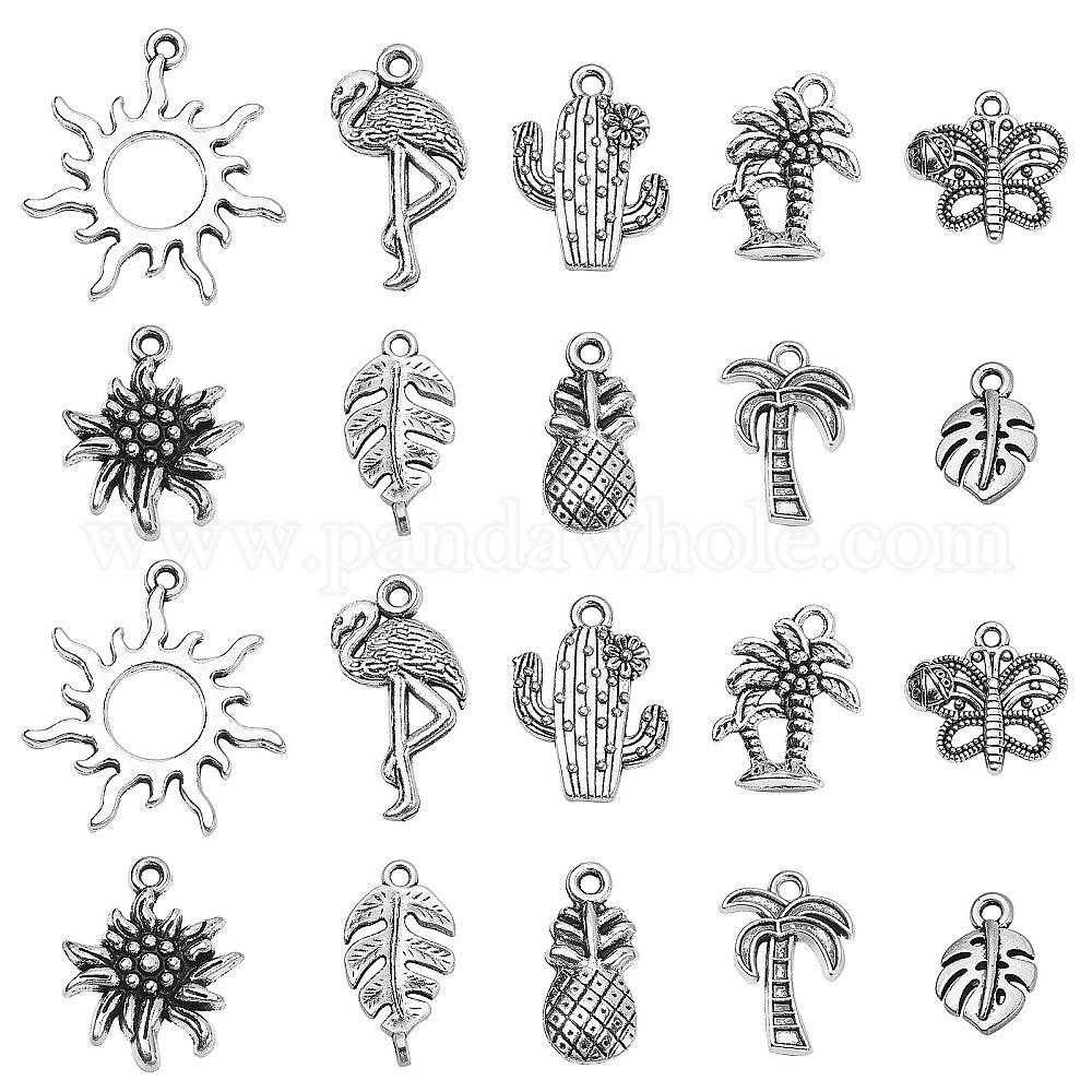 100 шт 10 стили подвески из сплава в тибетском стиле, без кадмия и без свинца, тропическая тема, ананас, кактус и кокосовая пальма