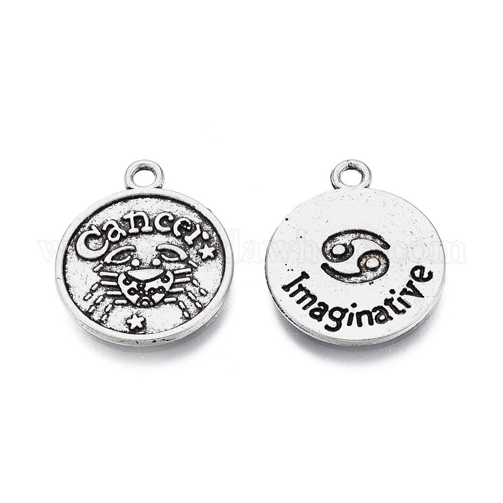 Сплавочные подвески тибетского стиля, без кадмия и без свинца, плоский круглый с раком и творческим словом,