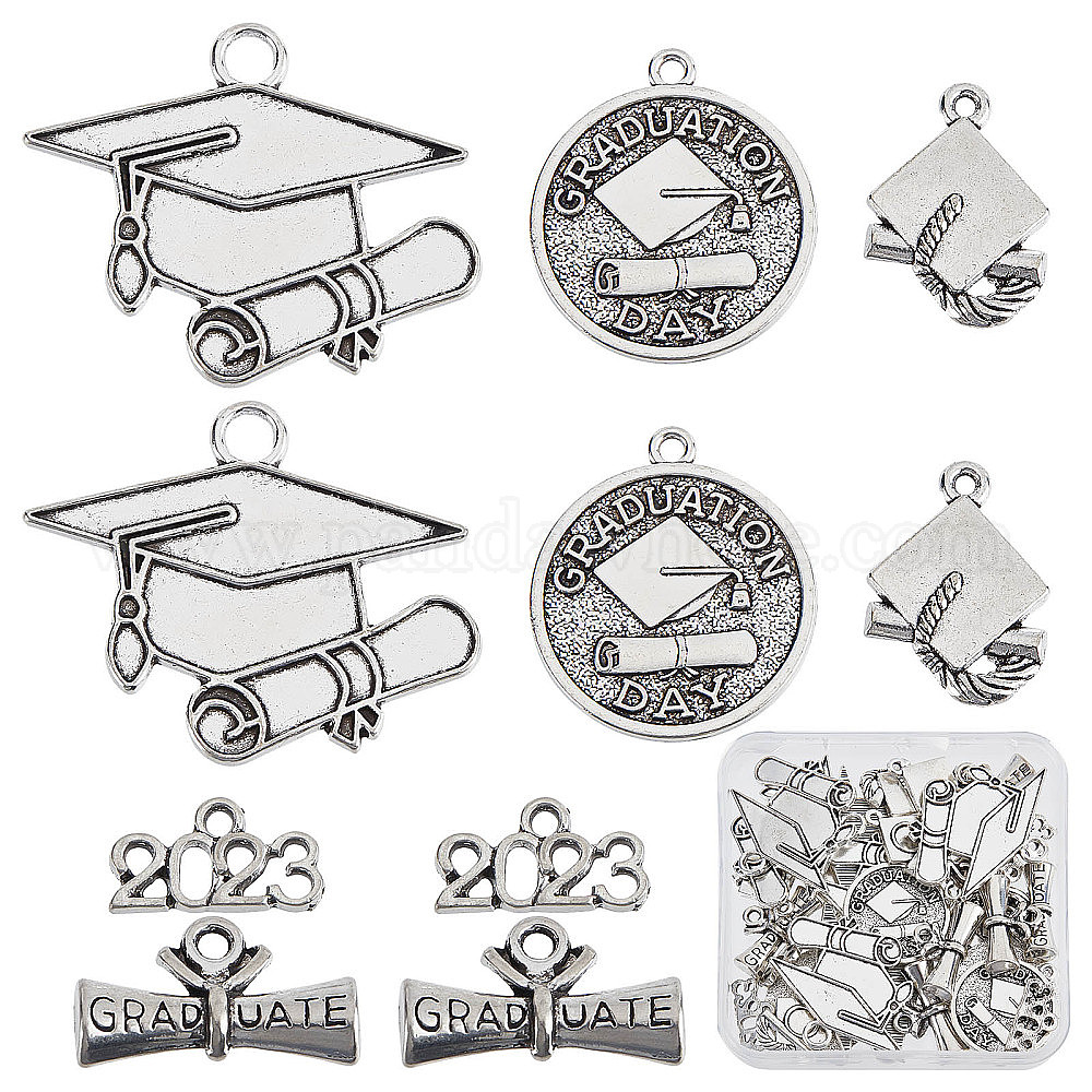 плоский круглый со словом выпускной день: около 25x22x1мм, отверстие : 1.8 мм, 10 шт;