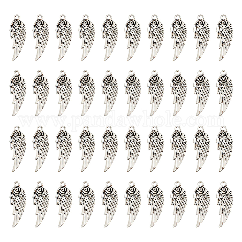 100 подвески из цинкового сплава в тибетском стиле, крыло с цветком, без свинца и без кадмия