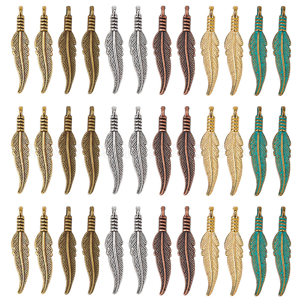 120 шт 6 цвета подвески из сплава в тибетском стиле, перо