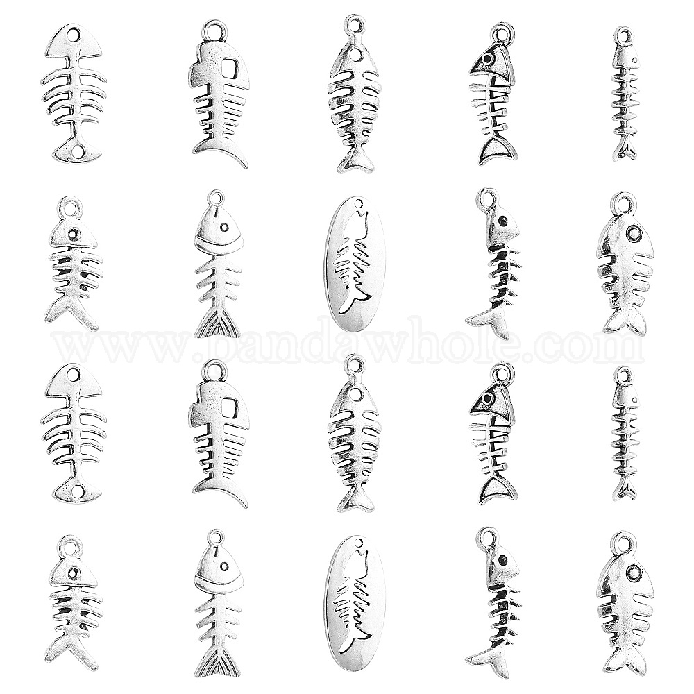 100шт 10 стили подвески из сплава в тибетском стиле, без кадмия и без свинца, овальный с рыбой