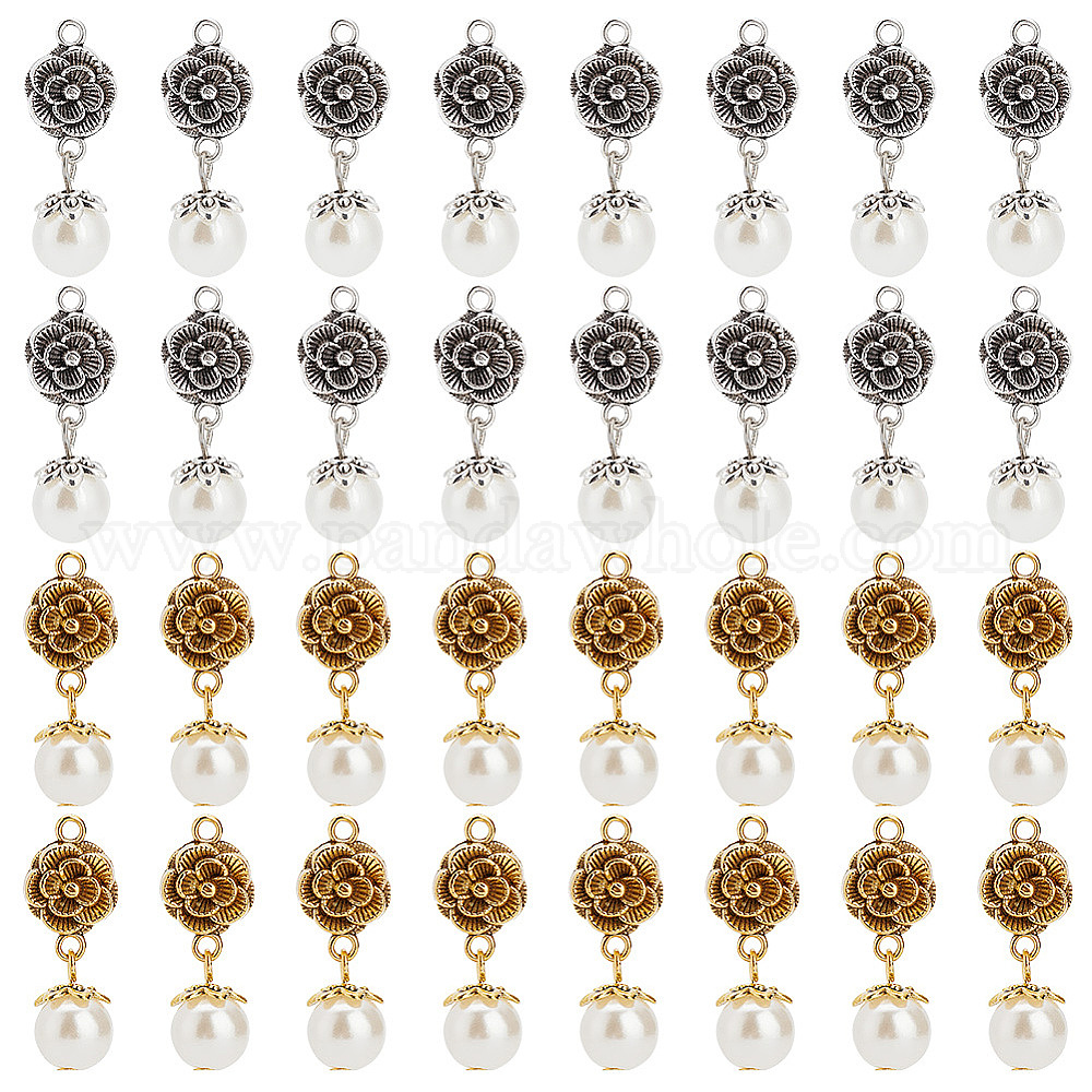 32 шт 2 цвета подвески из сплава в тибетском стиле, с абс пластмассовыми жемчужными бисером, цветок