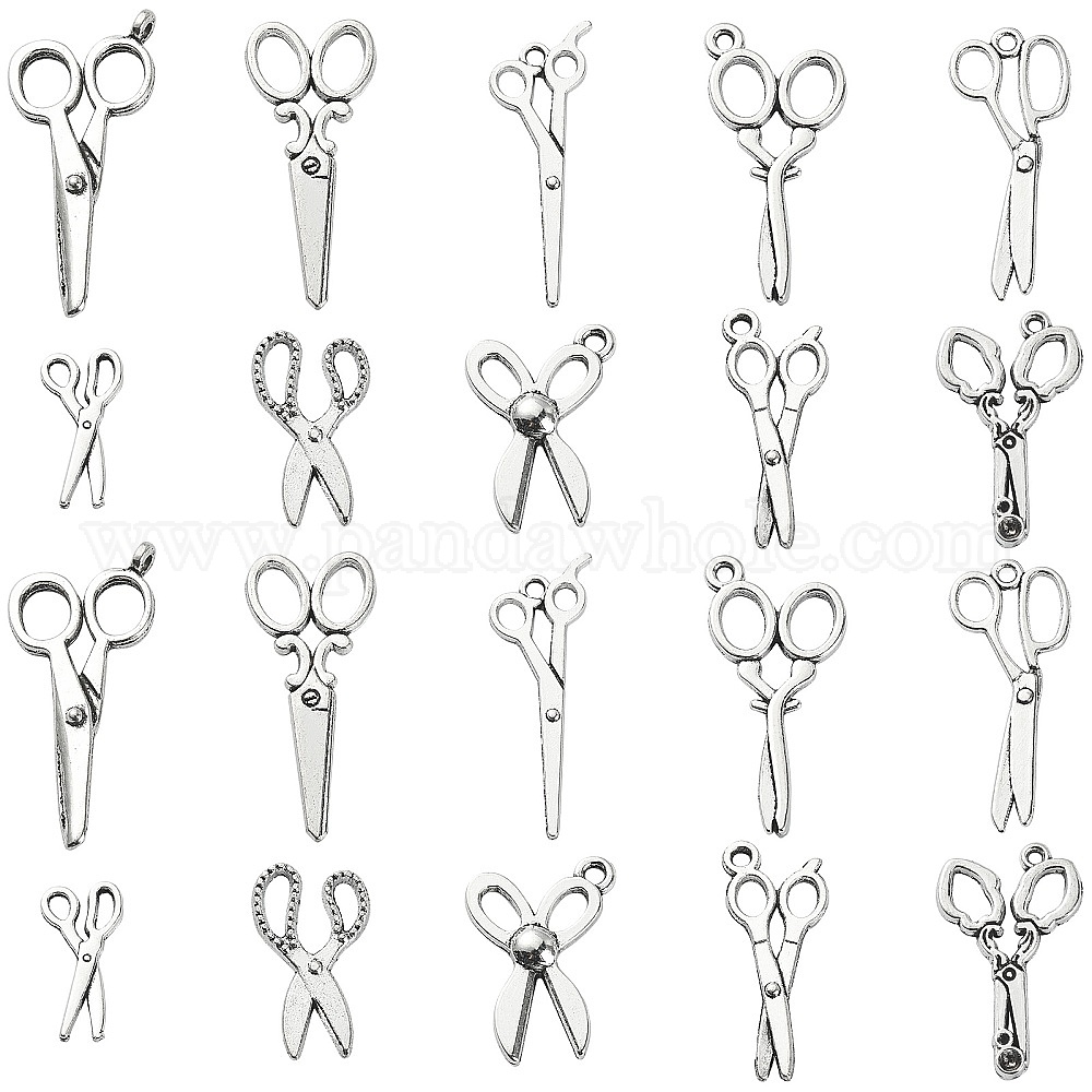 100 шт 10 стили подвески из сплава в тибетском стиле, без кадмия, без никеля и без свинца, форма ножниц