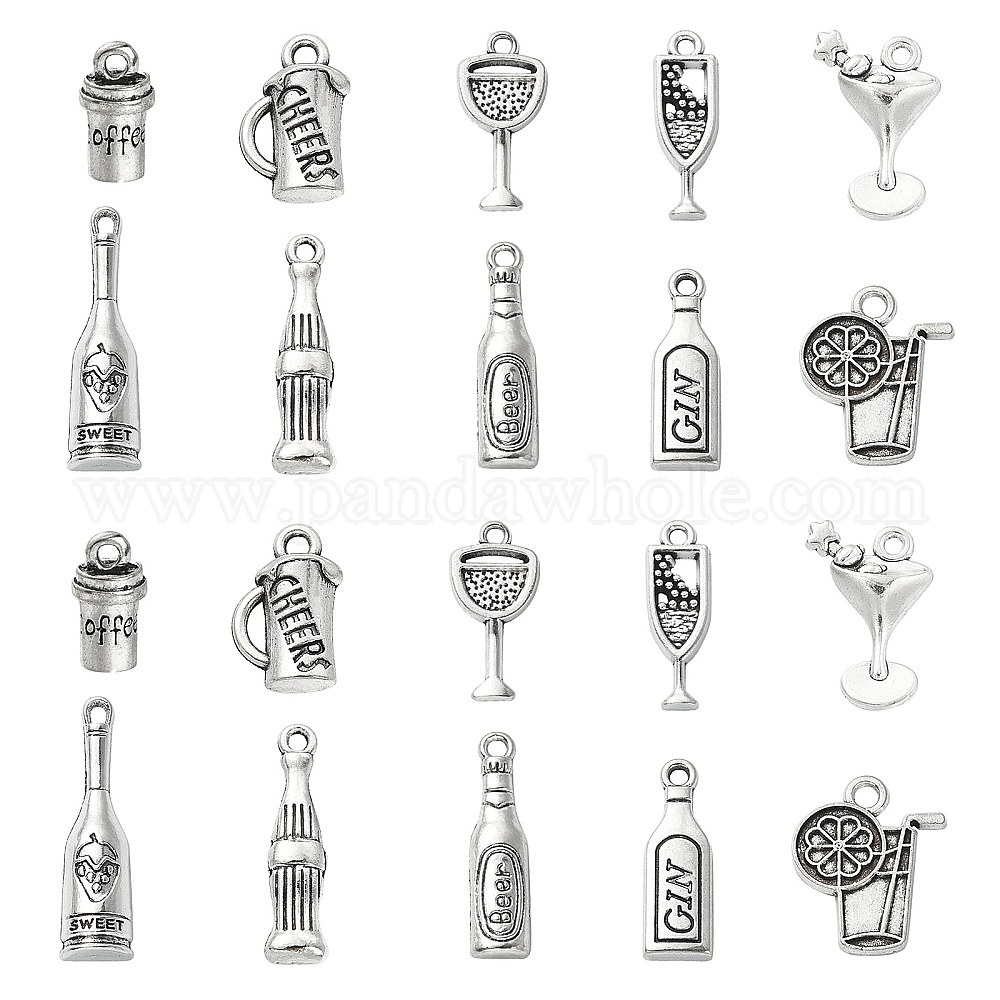 100 шт 10 стили подвески из сплава, бутылка вина, лимонный сок, коктейль и кола
