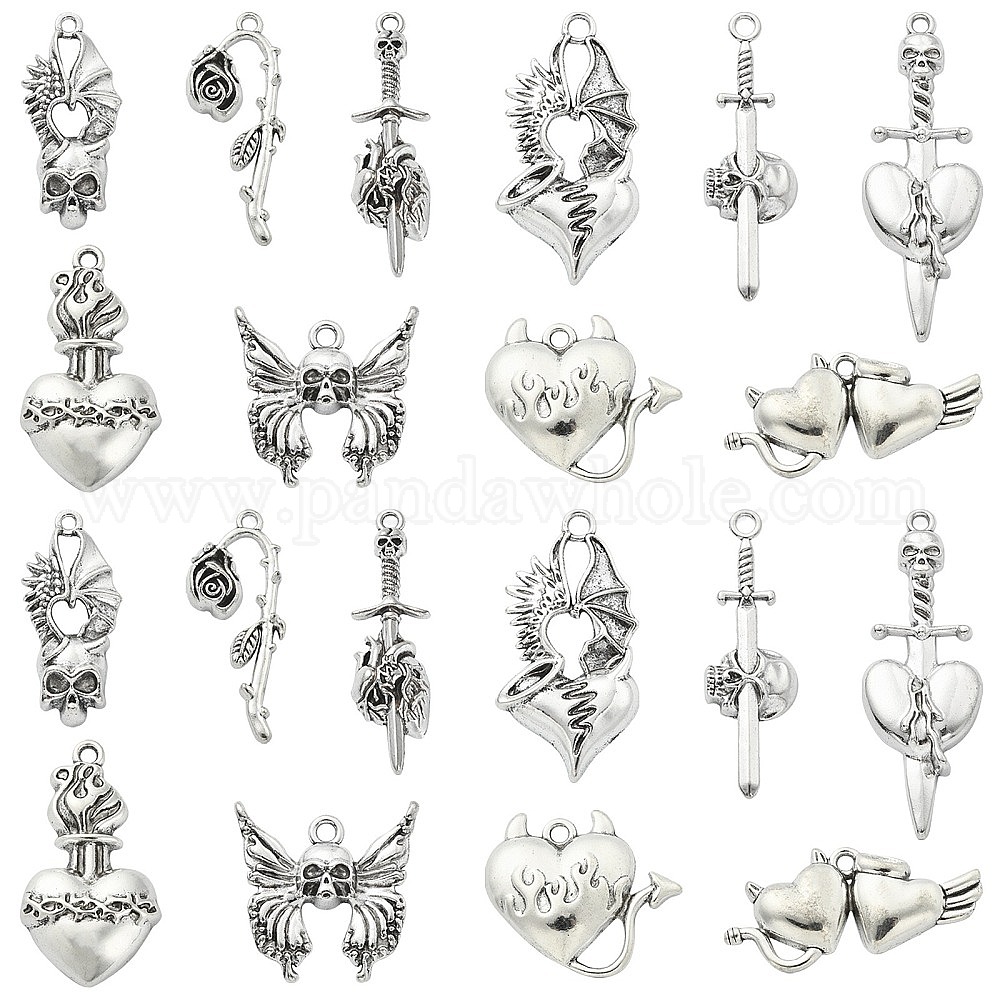 50шт 10 подвески из сплава в готическом тибетском стиле, античное серебро, сердце и крыло и бабочка и роза