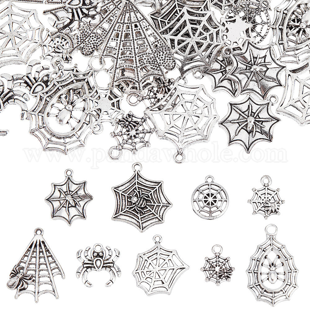 54шт 9 стили хэллоуин украшения тибетский стиль сплав подвески, паук и паутина