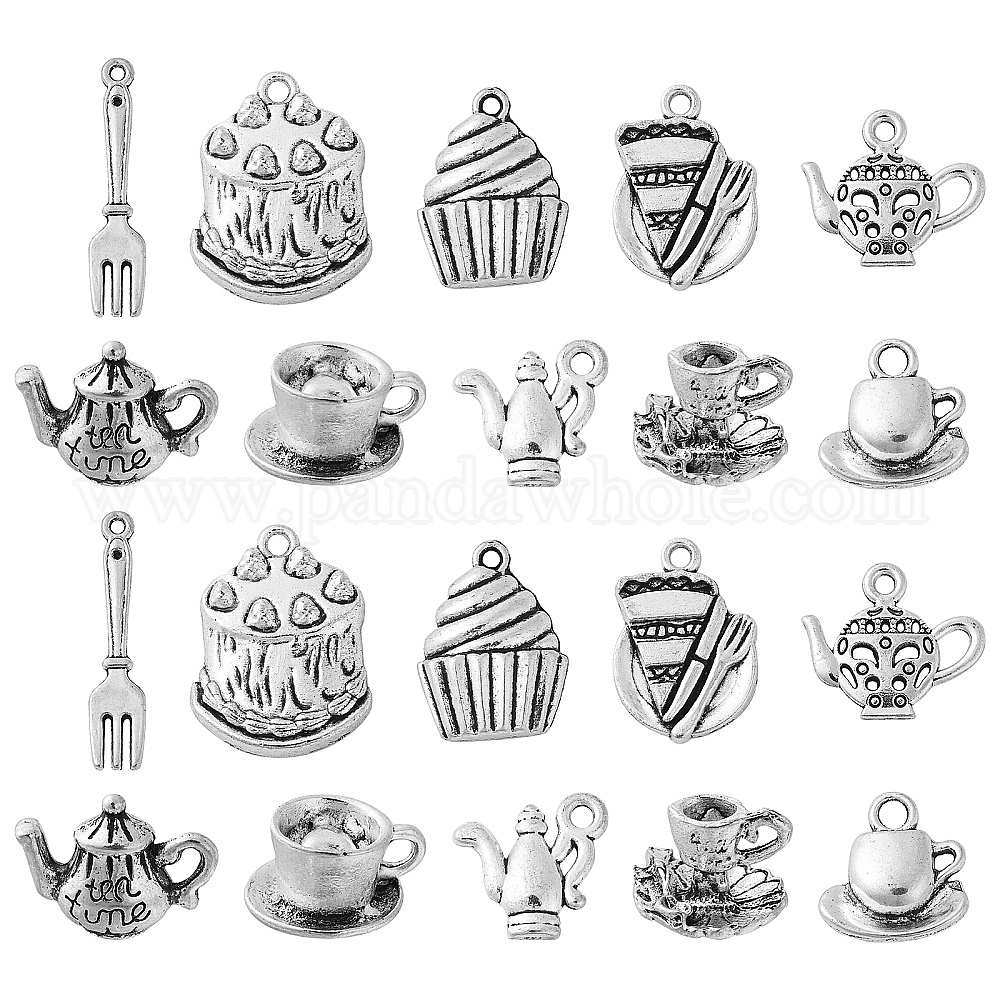 100 шт 10 стили подвески из сплава в тибетском стиле, кофейная чашка, торт, чайник и вилка