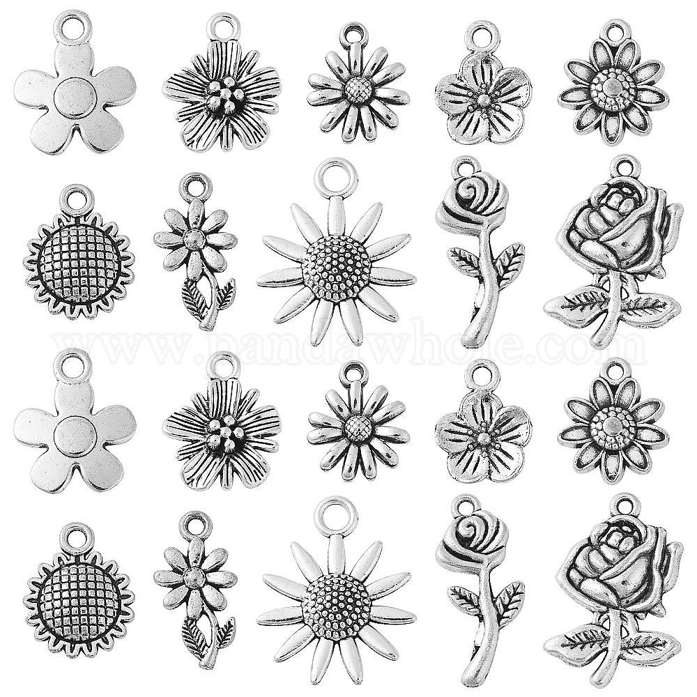 100 шт 10 стили подвески из сплава в тибетском стиле, цветок