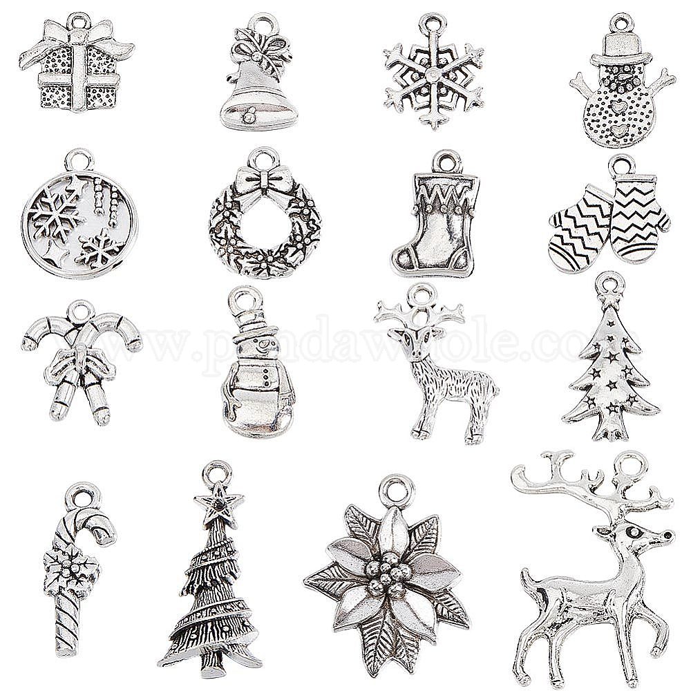 96 шт 16 подвески из сплава в тибетском стиле, без свинца и без кадмия, на Рождество, разнообразные