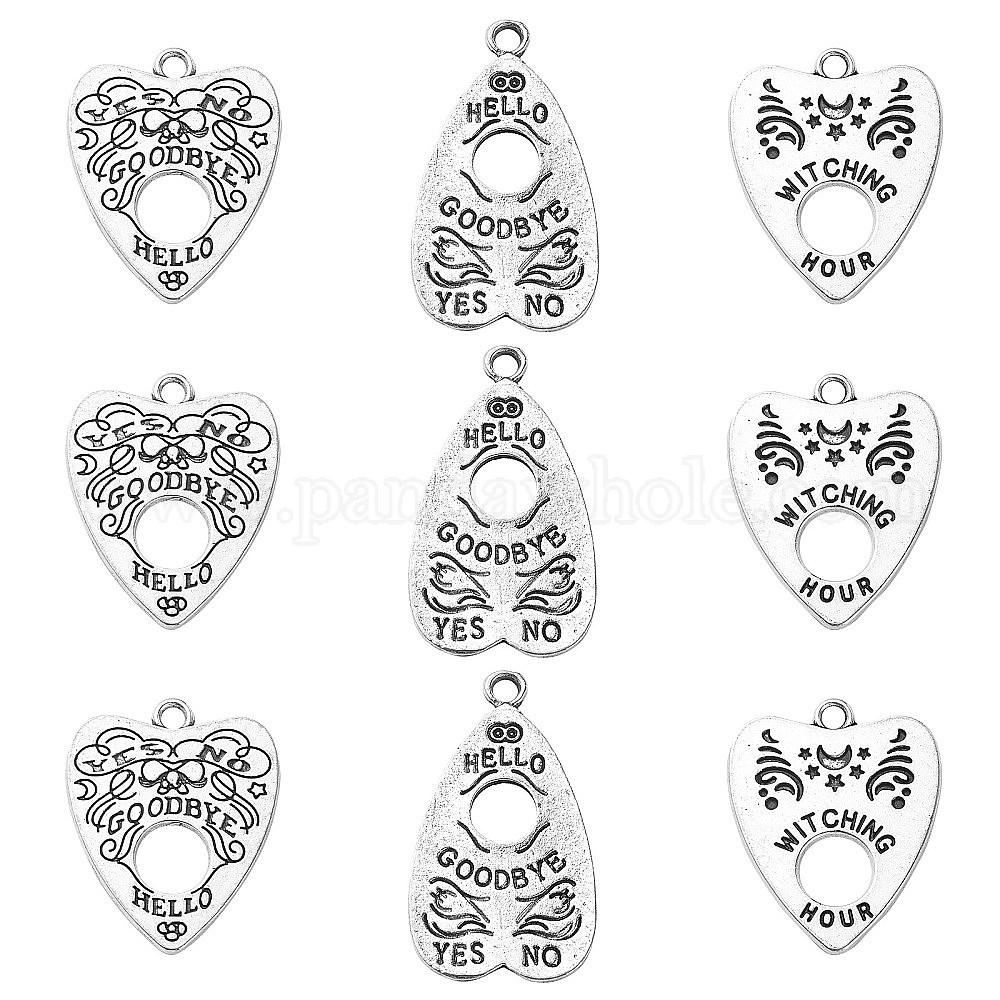 30 шт 3 стили подвески из сплава в тибетском стиле, сердце со словом привет и до свидания и ведьмин час