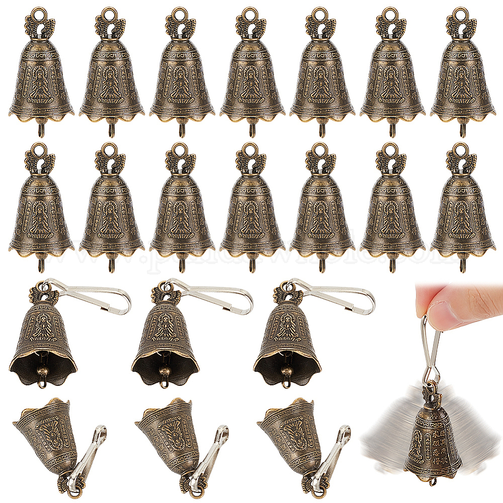 24 шт. Подвески из сплава в тибетском стиле, буддийский колокольчик с китайскими иероглифами, с железной застежкой для ключей 24 шт.