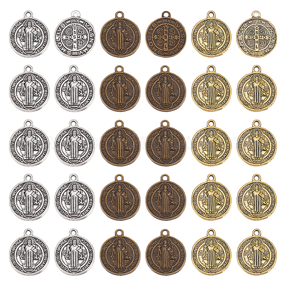 60шт 3 цвета подвески в тибетском стиле, святой Бенедикт медаль, без кадмия, без никеля и без свинца, религия, плоско-круглые