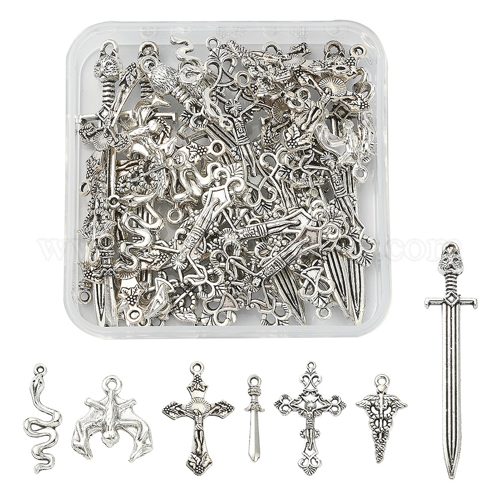 42 шт. 7 наборы подвесок из сплава в готическом стиле в тибетском стиле, катана и распятие крест и змея и летучая мышь