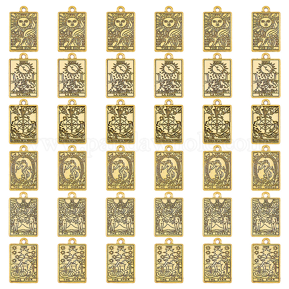 • Античное Золото 36 шт 6 подвески из сплава в тибетском стиле, прямоугольник с шармом Таро, античное золото , 23x14x1.5 мм, отверстие : 2 мм, 6 шт / стиль