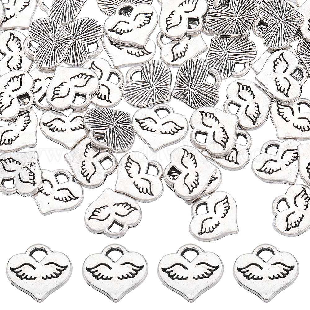 100Шармы из сплава в тибетском стиле, сердце с крыла
