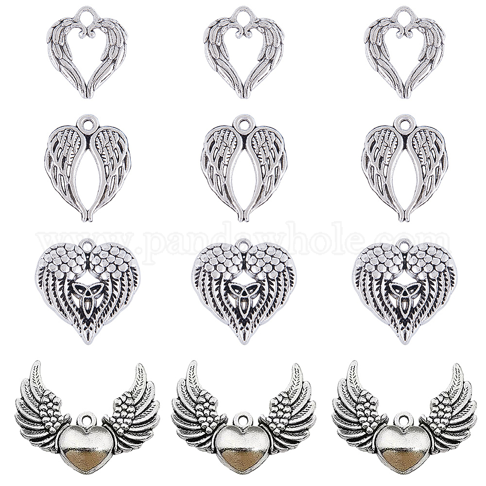 40 шт 4 стили подвески из сплава в тибетском стиле, очарование крыла сердца