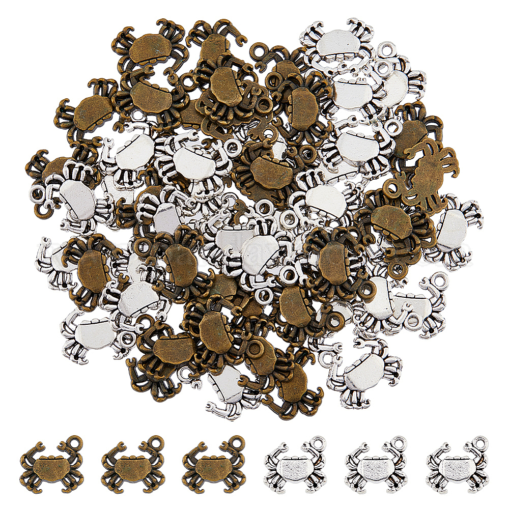 60шт 2 цвета подвески в тибетском стиле, краб, без кадмия, без никеля и без свинца