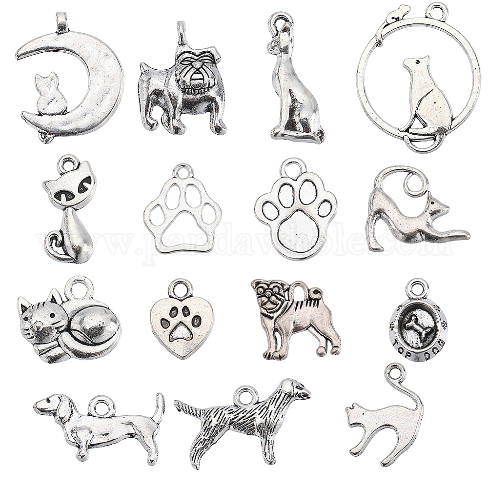 90 шт 15 подвески из сплава в тибетском стиле, оберег кошки/собаки