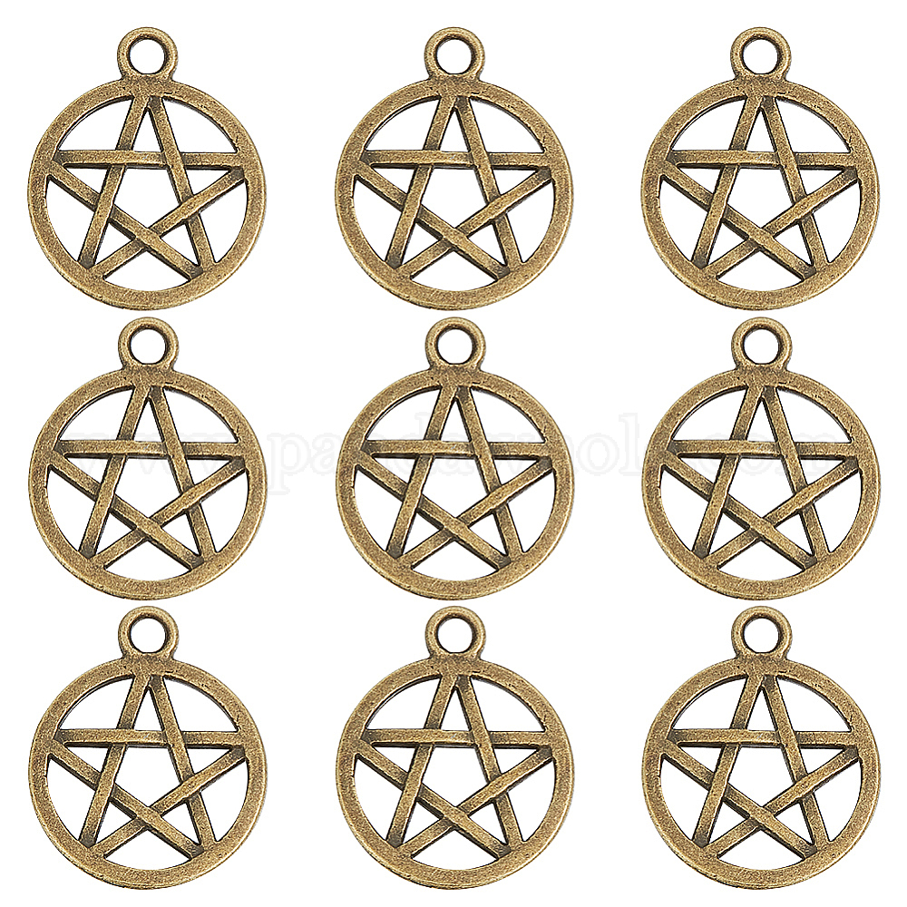 • Античная Бронза Сплавочные подвески тибетского стиля, кулоны викка, плоские круглые со звездой, античная бронза, 20.5x16.9x1.7 мм, отверстие : 2 мм, 100 шт / коробка