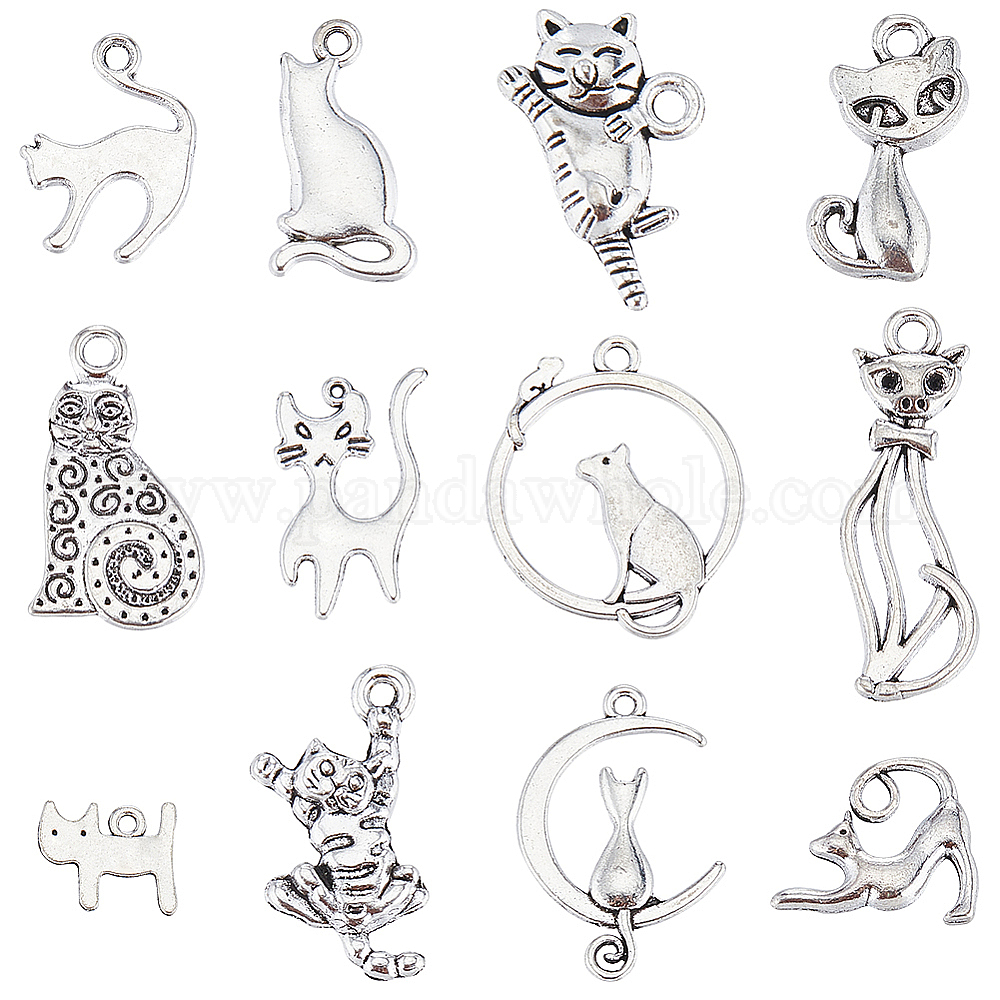 96шт 12 стили тибетский стиль подвески котенка из сплава, мультфильм кошка