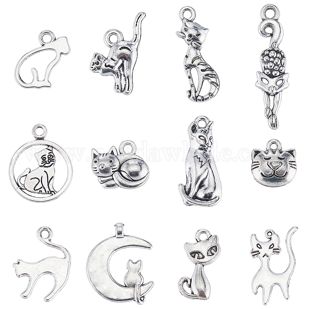 96 шт 12 стили подвески из сплава в тибетском стиле, кошка