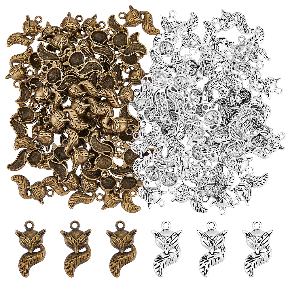 120 шт 2 цвета подвески из сплава в тибетском стиле, без кадмия, без никеля и без свинца, лиса
