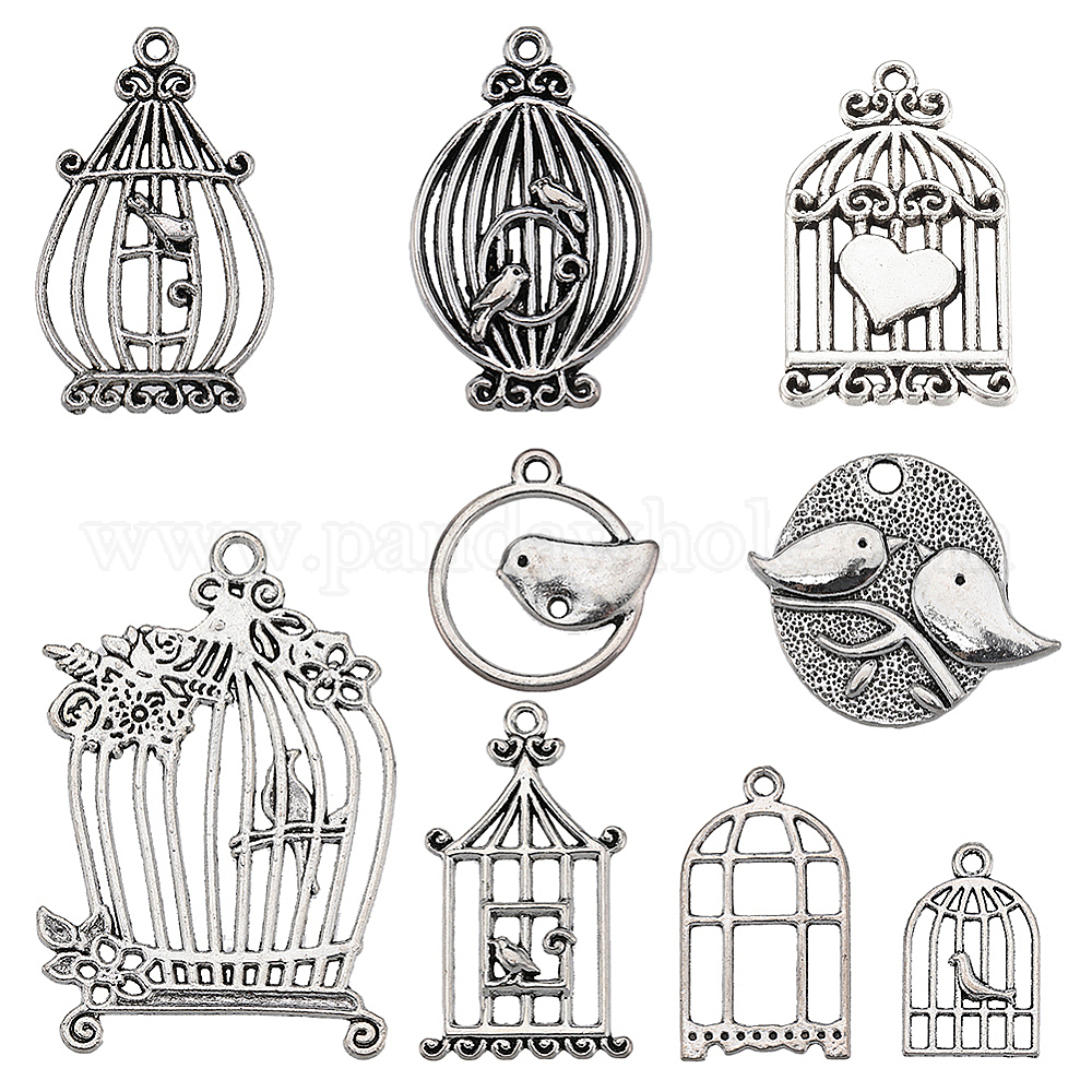 54 шт 9 подвески из сплава в тибетском стиле, Птица и птица