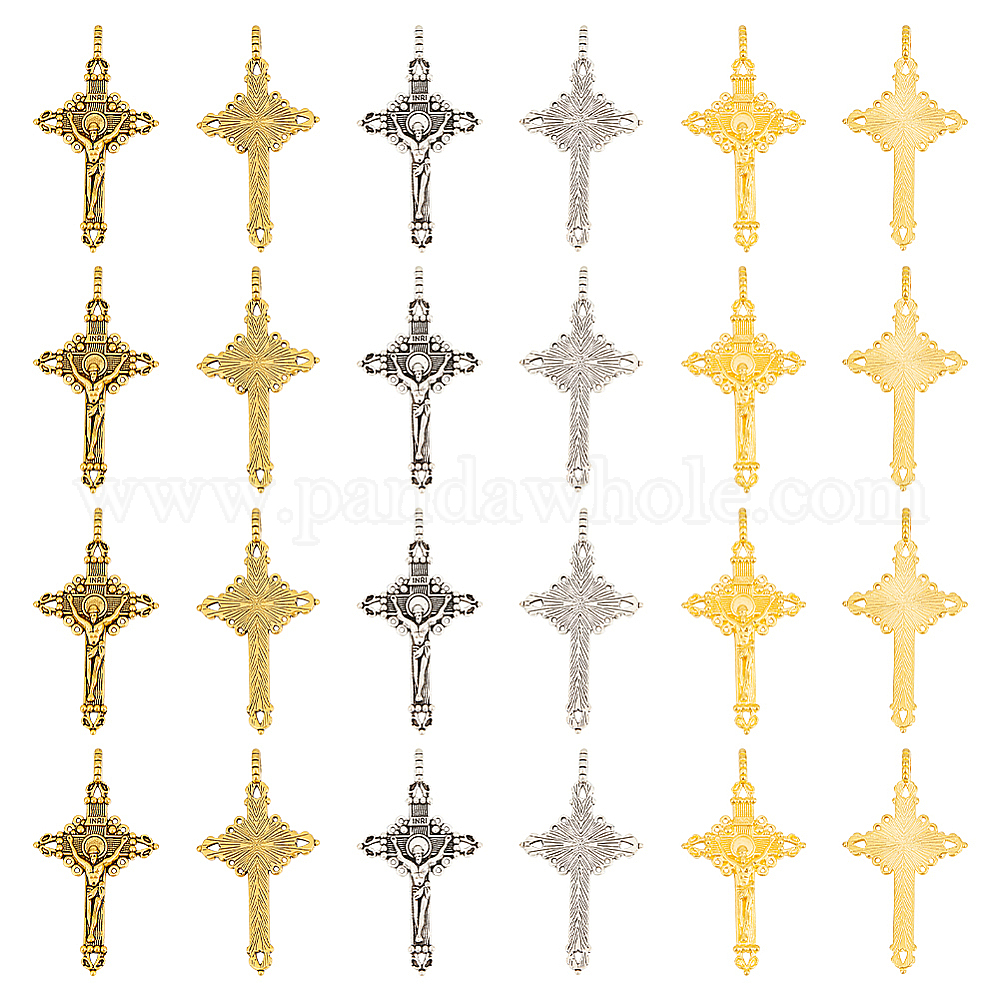 24 шт 3 цвета подвески из сплава, без кадмия и без свинца, на Пасху, кулон крест распятия