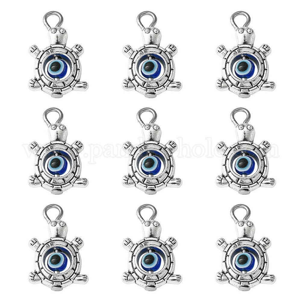30Подвески из сплава в тибетском стиле и смолы от сглаза, с платиновыми тоновыми железными петлями, черепаховые чары