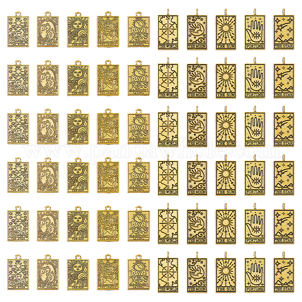 60 шт 10 подвески из сплава в тибетском стиле, прямоугольник с рисунком таро