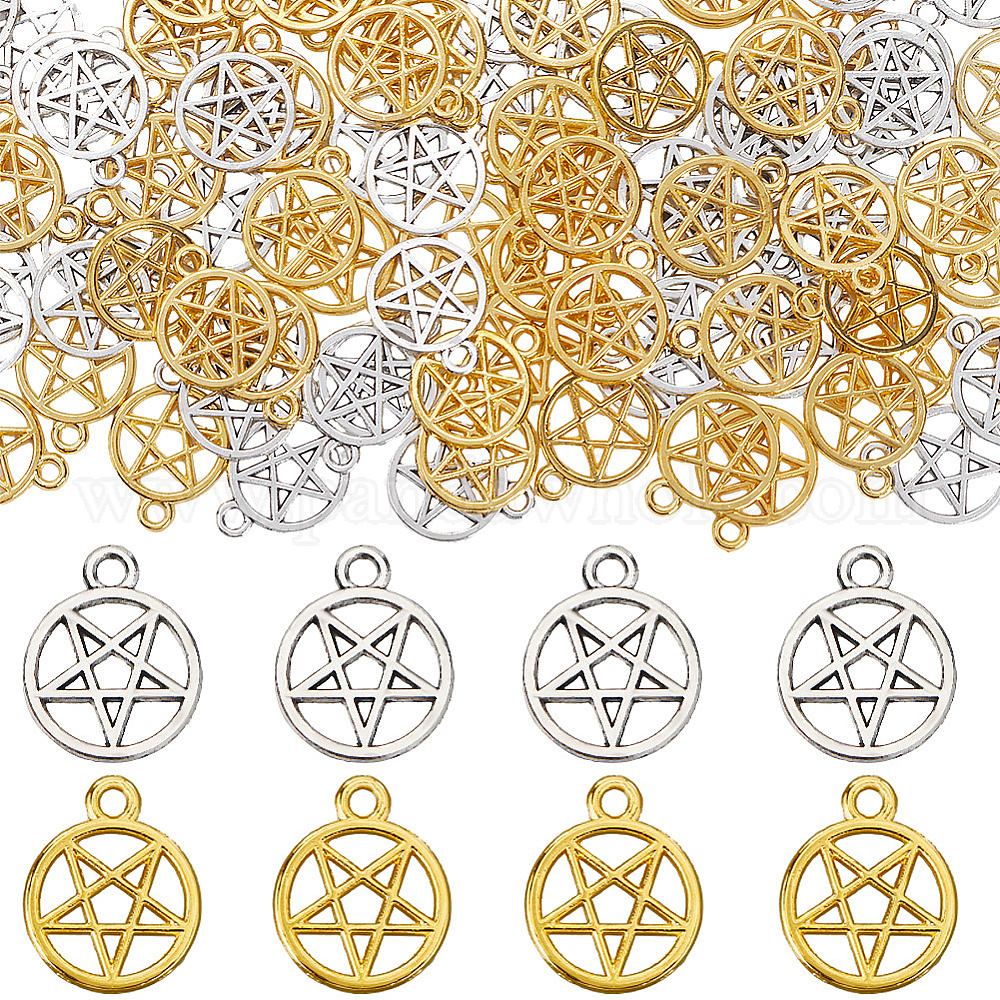 100 шт 2 цвета подвески из сплава в тибетском стиле, полый, звонить звездочкой