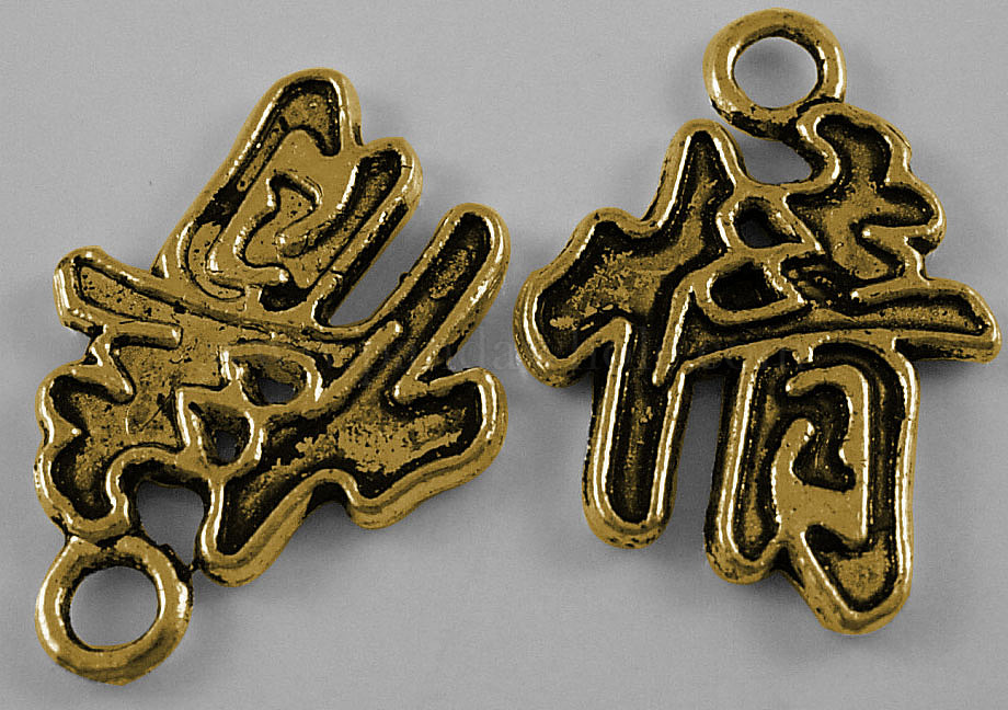• Античное Золото Подвески из сплава в тибетском стиле , китайский символ, без кадмия и без свинца, античное золото , 22.5x16 мм, отверстие : 3 мм