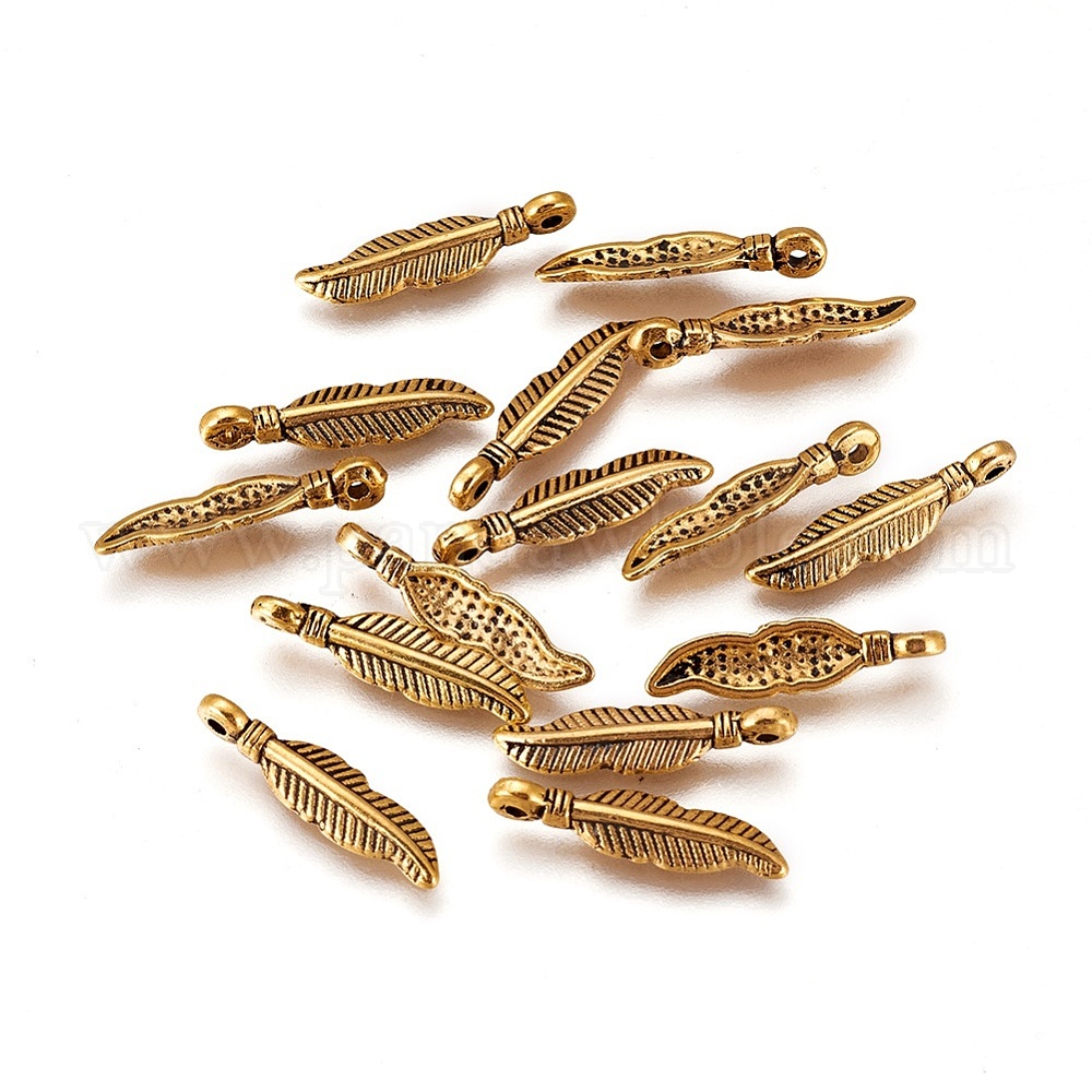 Сплавочные подвески тибетского стиля, без свинца и без кадмия, перо, 4x19x2 мм, отверстие : 1.5 мм, Около 2170 шт / 1000 г