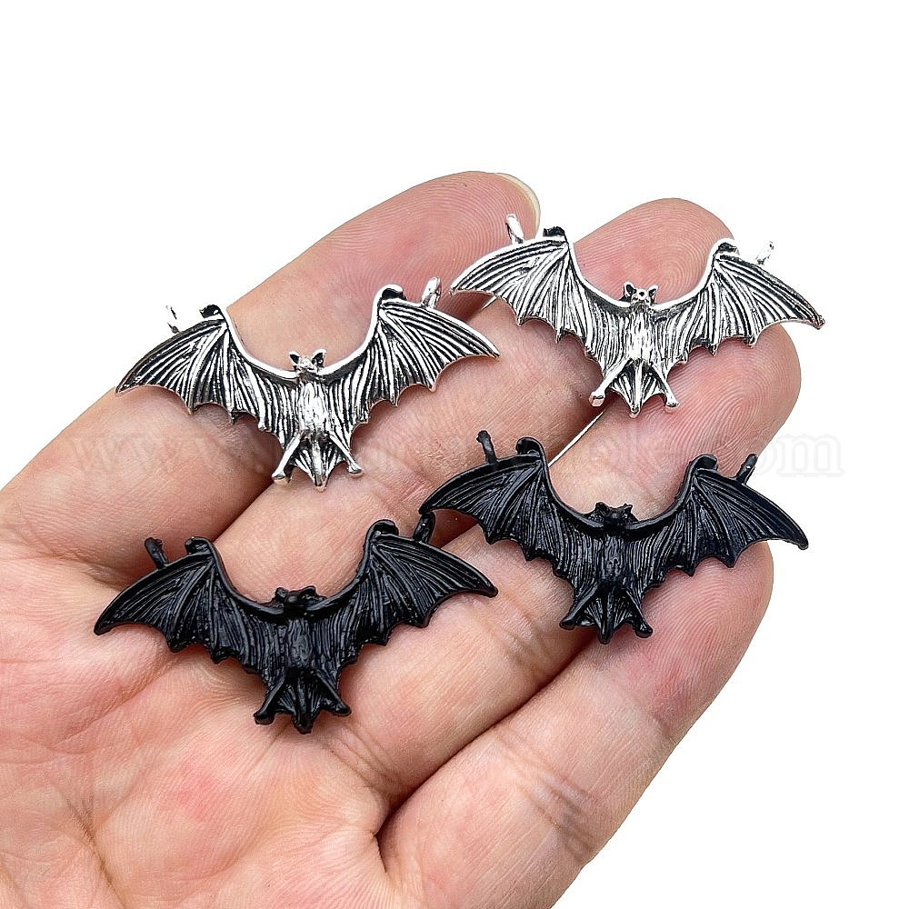 • Черный Подвески из сплава , летучая мышь прелести, чёрные, 23x44 мм