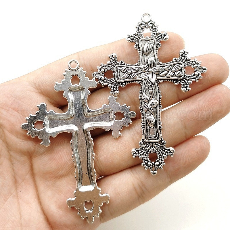 Подвески из цинкового сплава в винтажном тибетском стиле, крест из цветочной лозы