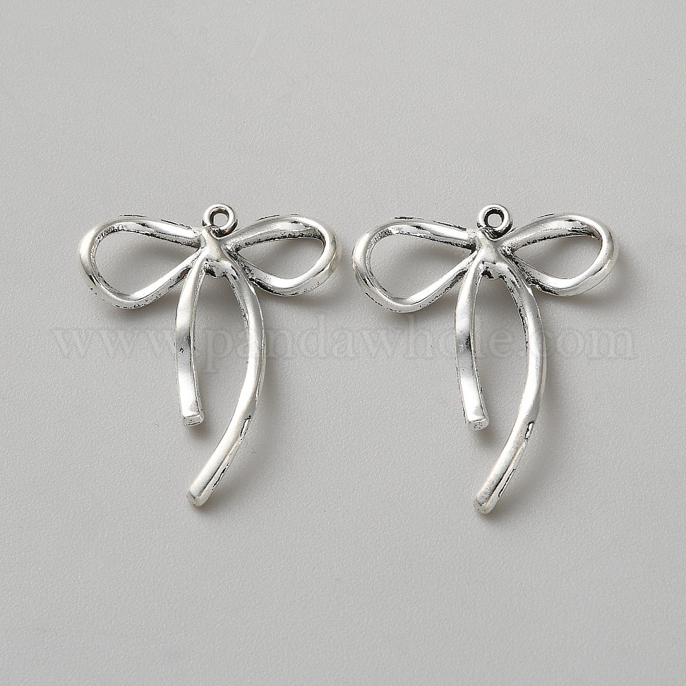 • Античное Серебро Сплавочные подвески тибетского стиля, бантом прелести, античное серебро, 25x20.5x3.5 мм, отверстие : 1 мм