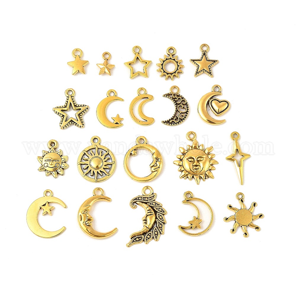 • Античное Золото Сплавочные подвески тибетского стиля, комплект подвесок серии «Луна и солнце», античное золото , 11~26x8~16x1~4 мм, отверстие : 1~2.5 мм