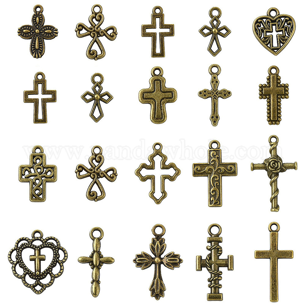 • Античная Бронза 100 шт 20 стили подвески из сплава в тибетском стиле, подвески крестовой серии, античная бронза, 16~25.5x10.5~20x1.5~3.5 мм, отверстие : 1.5~2.5 мм, 5 шт / стиль