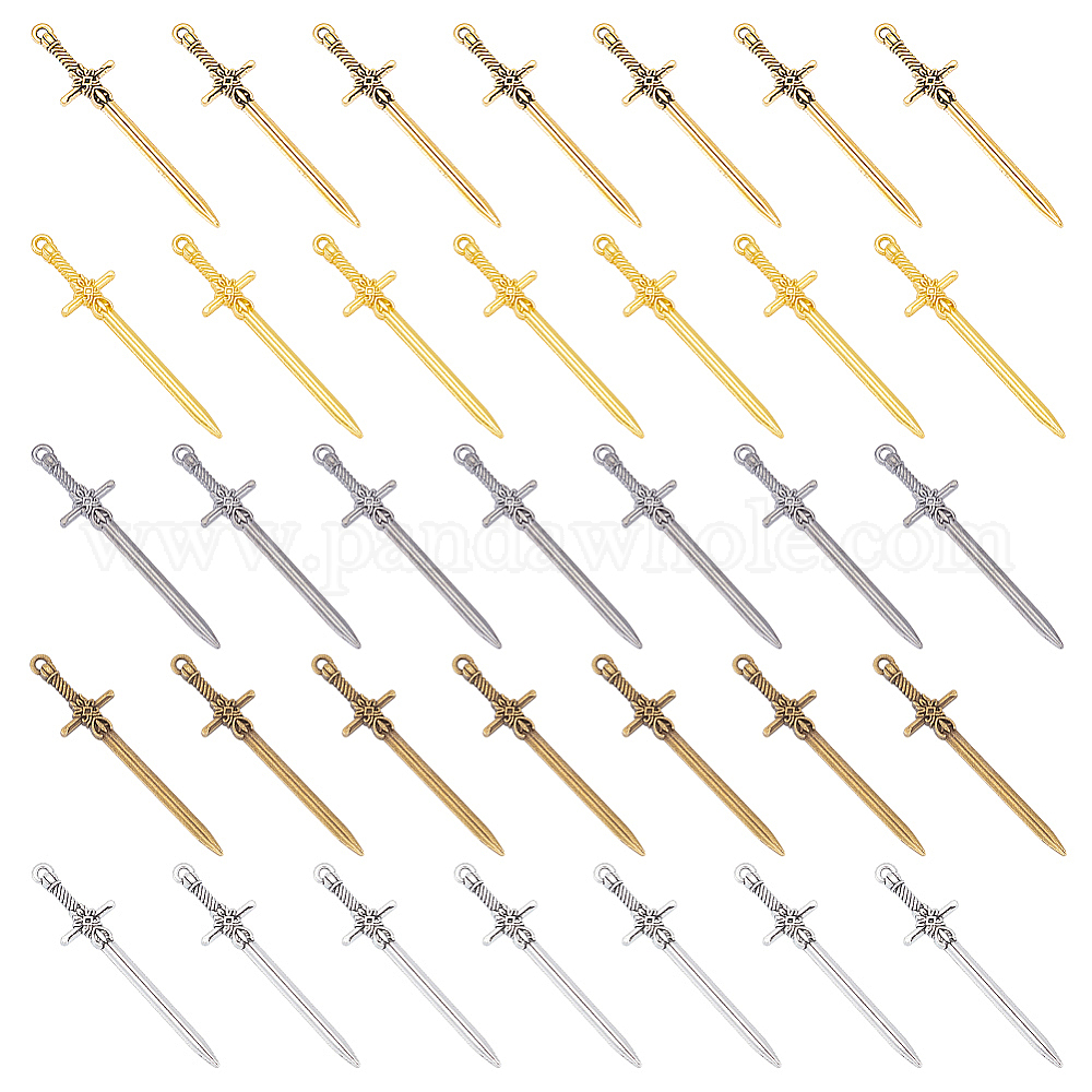 60 шт 5 цвета подвески из сплава в тибетском стиле, меч