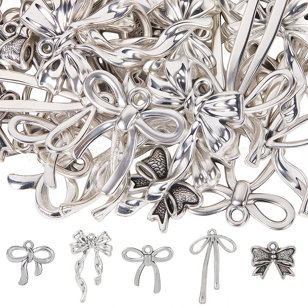 50 шт 5 стили сплава подвески в тибетском стиле, бантом прелести