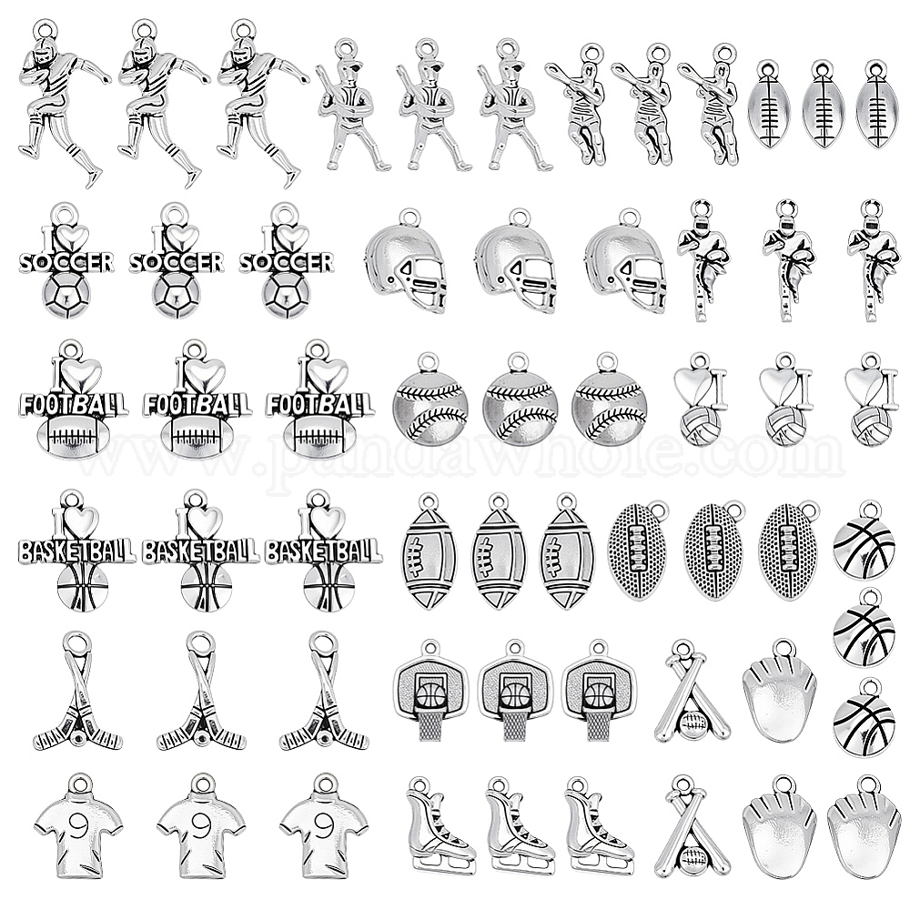 120 шт. 20 стили подвески из сплава в спортивном стиле в тибетском стиле, античное серебро