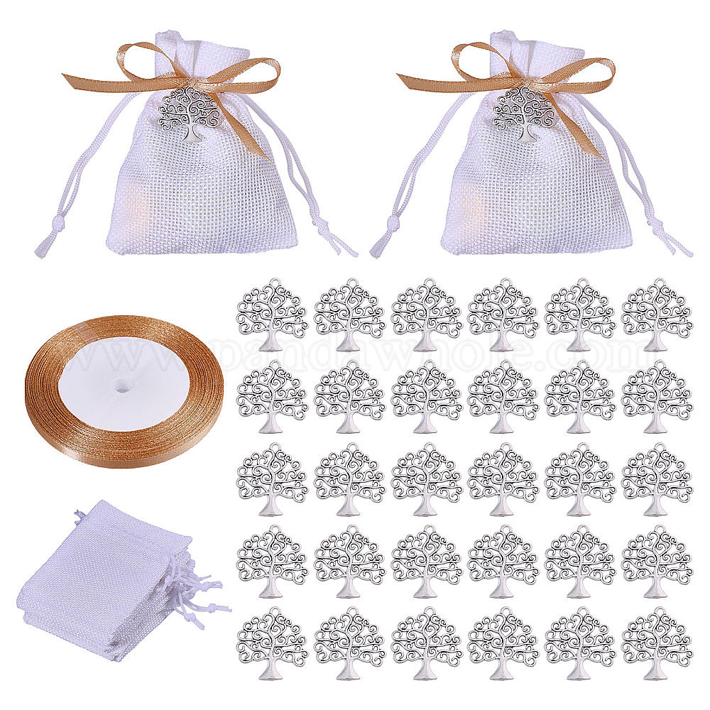 30подвески из сплава в тибетском стиле из поликарбоната, Дерево прелести, с 30шт. сумками-шнурками и полиэфирной лентой